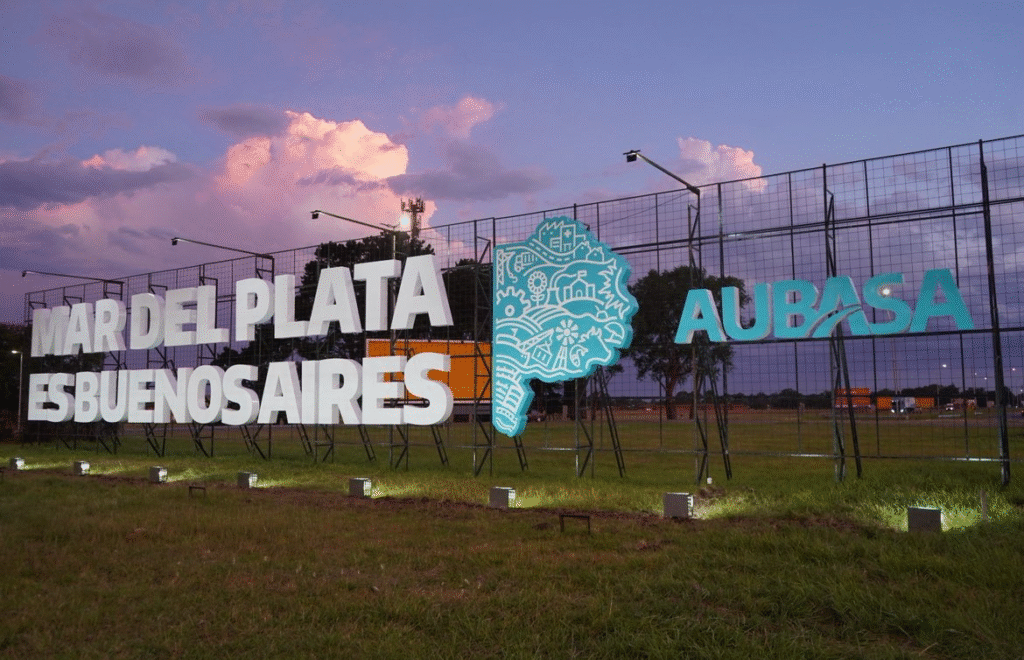 Aubasa finalizó en las últimas horas la renovación del cartel de bienvenida a Mar del Plata, ubicado en la rotonda frente al aeropuerto Astor Piazzolla sobre la Autovía 2. La nueva estructura, con letras blancas corpóreas y un diseño completamente actualizado, reemplaza al tradicional “Bienvenidos a Mar del Plata” por el mensaje “Mar del Plata es Buenos Aires”.