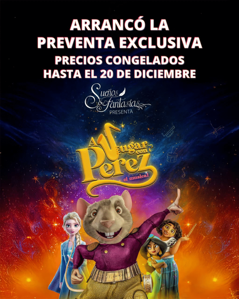 En un formato de concierto infantil, Pérez y su grupo de amigos te esperan para compartir una inolvidable aventura musical, repleta de emociones, canciones y sorpresas, donde no faltará el mágico encanto de las princesas Mirabel, Elsa y Jazmín.